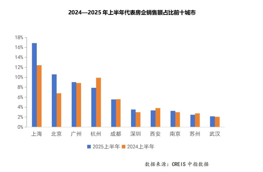 上半年,重点房企加速聚焦核心一二线城市,在对城市和地段形成共识之下,核心城市的业绩贡献率增速也显著提升。