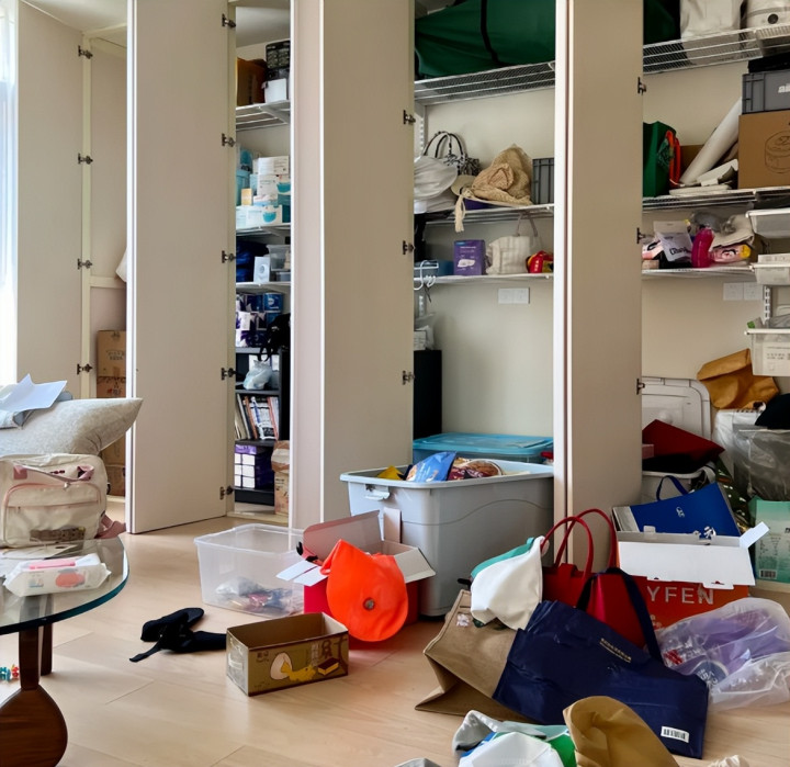 就比如,厨房灶台全都是杂物,以及过期的调味料,做个饭还要先看看调料有没有过期;想在沙发躺一会,需要先把沙发收拾一下,杂物扔掉……打开衣柜,里面都是乱糟糟的衣服,穿什么、怎么搭配,都变成了难题。