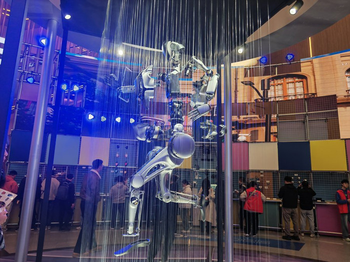 上海方圆多少公里,可集齐一台人形机器人?答案藏在张江机器人谷内。这里,一台人形机器人被拆解成数十个结构件,由大量垂直线束连接。